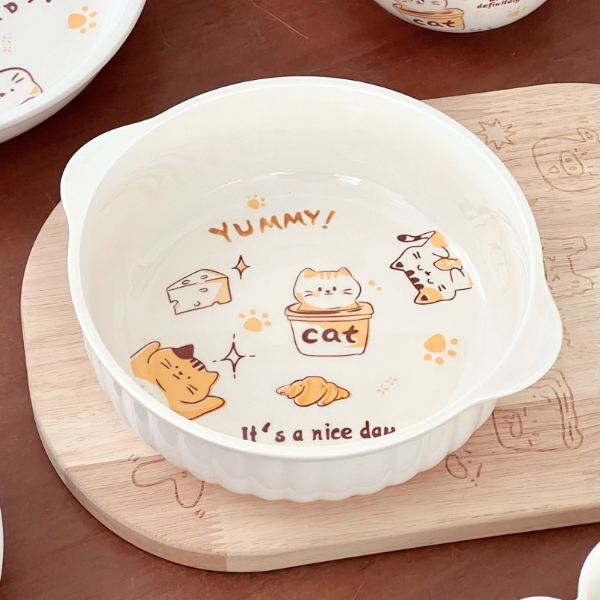 Bowl Cerámica con Asa Redondo Yummy Gatito