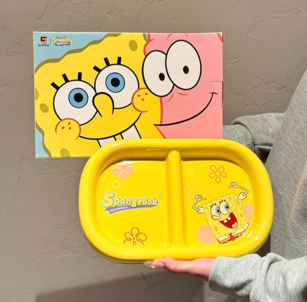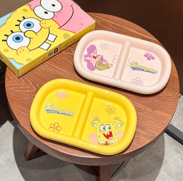 Plato Cerámica con División Bob Esponja Amarillo