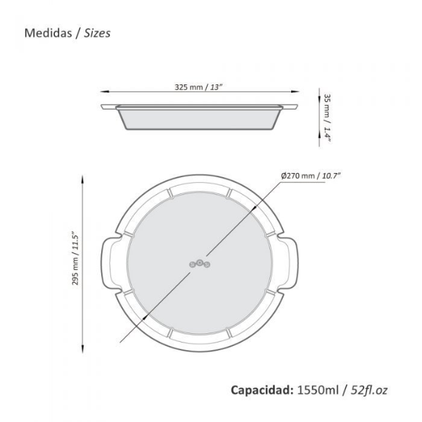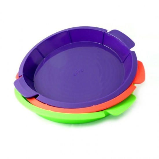 Con indicadores para cortar 8 porciones 100% silicona Libre de bpa (comida segura) Apto para: horno, microondas y lava vajilla Superficie antiadherente. Fácil limpieza Rango de temperatura: -40º a 250º c